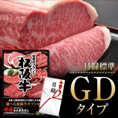 * GD-1 松阪牛すき焼き・しゃぶしゃぶ(ロース) 450g * GD-2 松阪牛すき焼き・しゃぶしゃぶ(ロース・肩ロース) 600g * GD-3 松阪牛すき焼き・しゃぶしゃぶ(肩モモ) 900g * GD-4 松阪牛焼肉(肩ロース) 600g * GD-5 松阪牛焼肉(肩・モモ・バラ) 900g * GD-6 松阪牛サイコロステーキ(サーロイン) 400g * GD-7 松阪牛サイコロステーキ(ブレンド) 700g * GD-8 松阪牛サーロインステーキ200g×2枚 * GD-9 しぐれ煮6個 + カレー6個